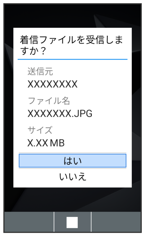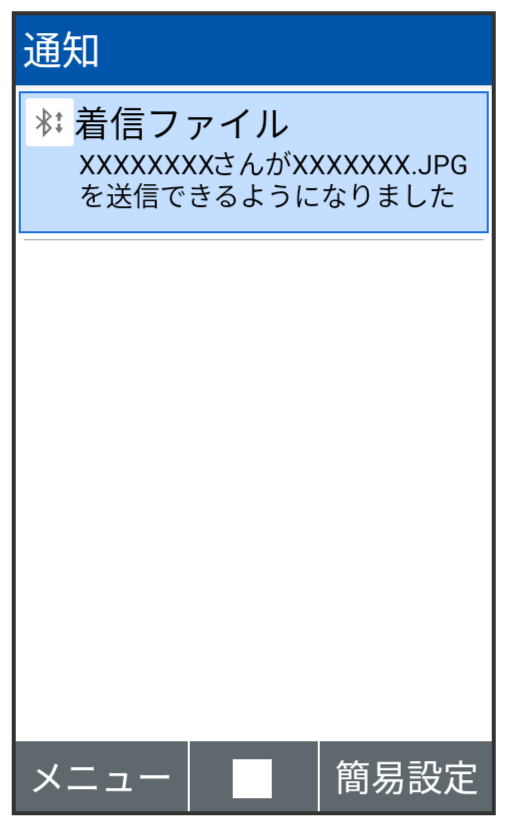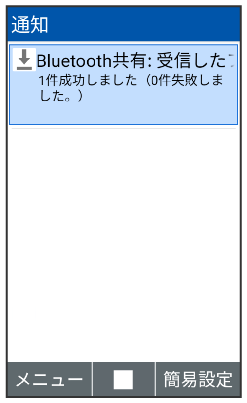 ペア設定している機器からデータの受信要求があると、通知パネルに共有通知が表示されます。次の操作を行うと、データを受信できます。