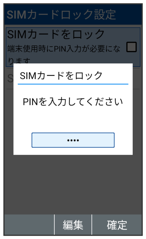 PINコードを有効にすることで、USIMカードを本機に取り付けた状態で電源を入れたとき、PINコード(USIMカード用の暗証番号)を入力する画面を表示するように設定できます。