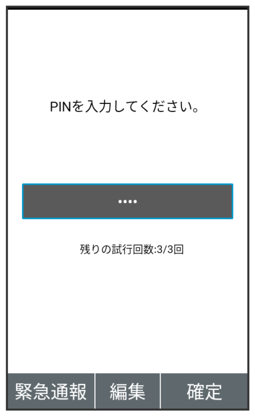 USIMカードロック設定時に電源を入れると、PINコード入力画面が表示されます。次の操作を行うと、本機が使用できます。