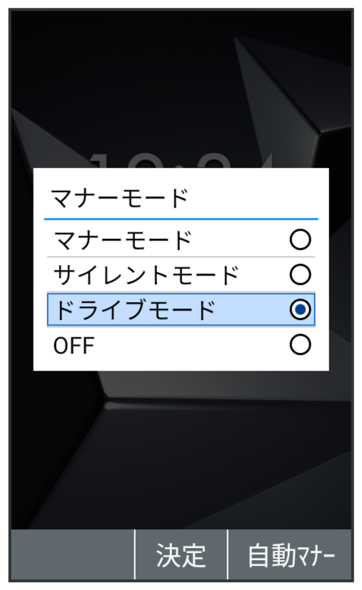 自動マナー設定画面で設定時刻を選択- に設定すると、設定時刻になるとマナーモードが解除になります。