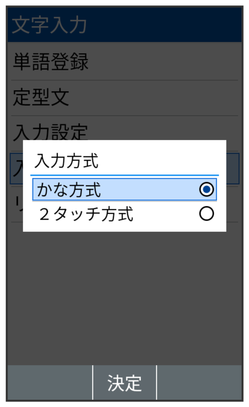 入力方式を「2タッチ方式」にすると、2桁の数字で文字を入力できます。