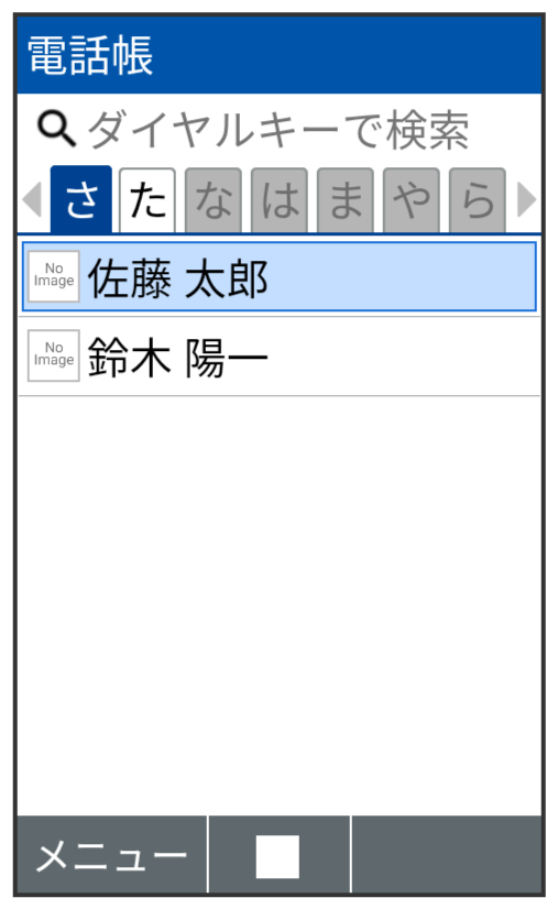(詳細)を押すと、その他の項目も表示します。 - 電話帳画面で検索ワードを入力すると、電話帳の絞り込み検索ができます。名前(よみがなを含む)/電話番号/Eメールアドレスなどの項目が検索対象となります。