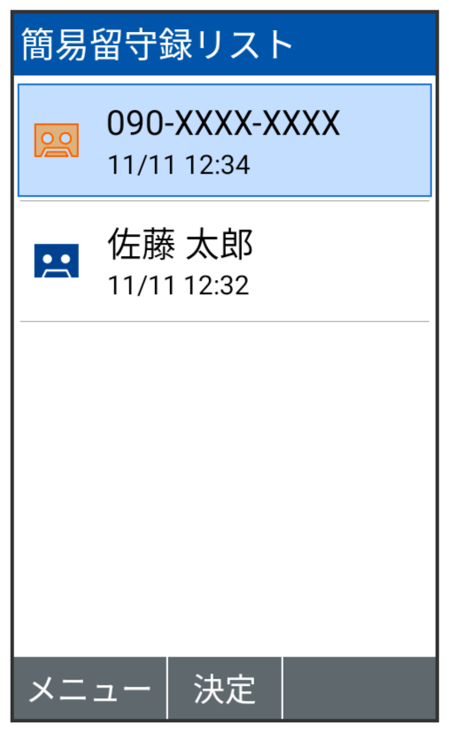 簡易留守録リスト画面で用件を選択- 保護された用件には