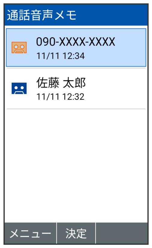 通話音声メモ一覧画面で通話音声メモを選択- 保護された音声メモには