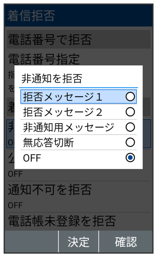 非通知での着信、公衆電話や通知不可電話からの着信を拒否することができます。