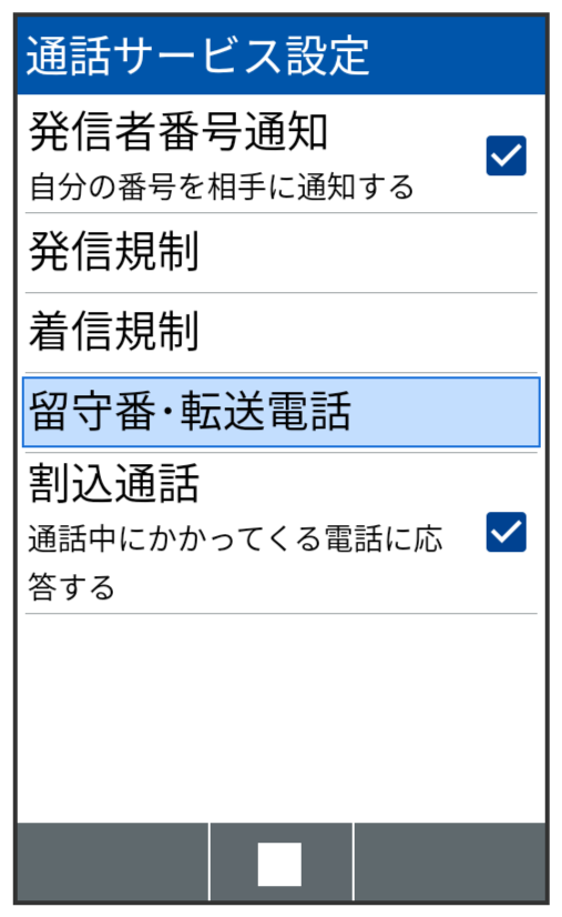 留守番・転送電話画面で時間を選択転送電話サービスを停止する
