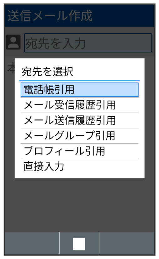 - //と操作すると、電話帳/メール受信履歴/メール送信履歴から宛先を選択できます。