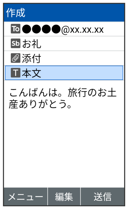 PCメール作成画面で添付ファイルの種類を選択PCメールの添付ファイルを削除する
