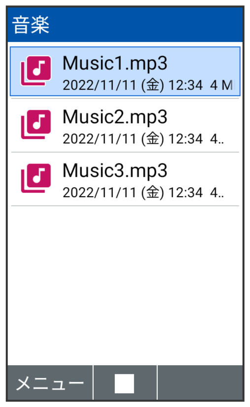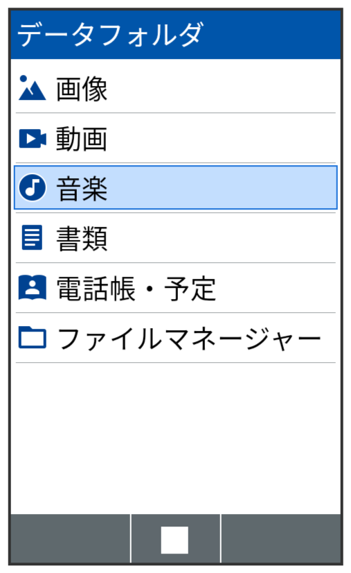 ここでは、データフォルダから音楽を選択して再生する方法を例に説明します。
