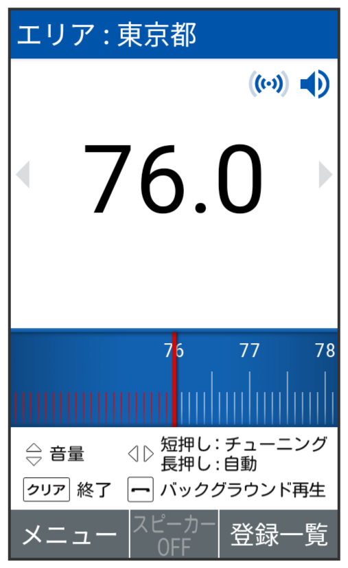 を押して選局のチューニングをします。長押しすると自動で選局されます。
