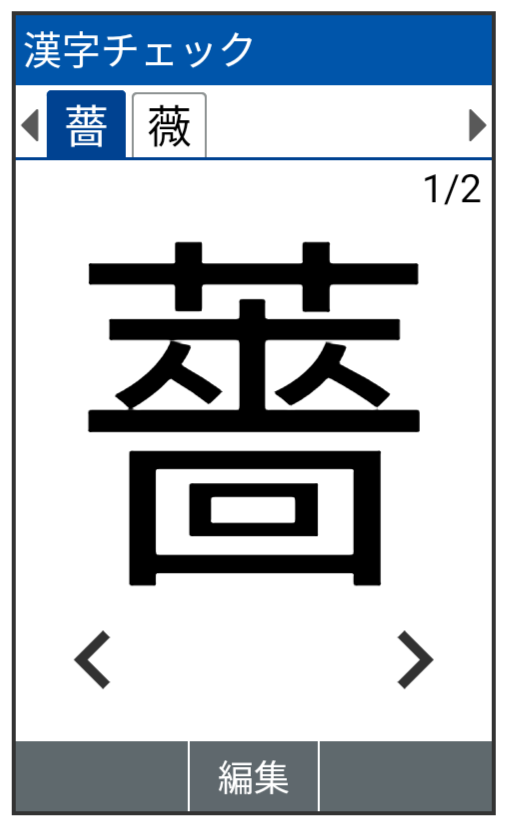 画数の多い漢字などを画面に大きく表示して確認することができます。