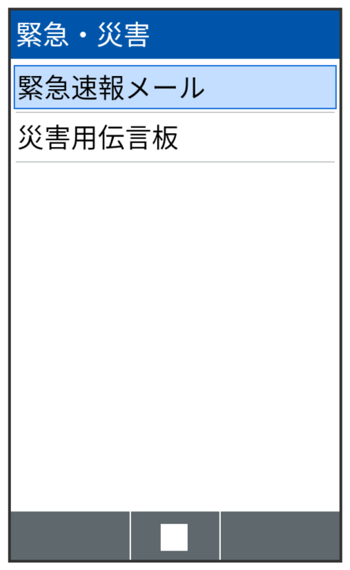 緊急速報メール受信メッセージ一覧画面が表示されます。