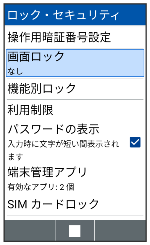 )が切り替わります。 - 画面ロックが/のときに設定されます。