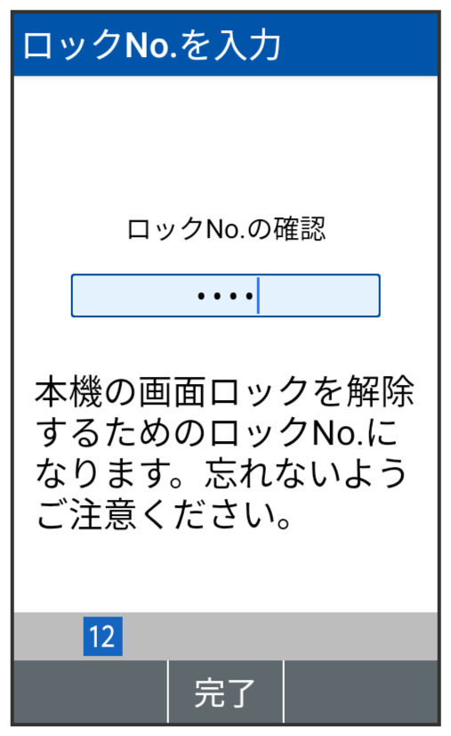 画面ロック解除に設定したロックNo./パスワードはメモに控えるなどして、お忘れにならないようご注意ください。お忘れになった場合は、最寄りのソフトバンクショップにて所定の手続きが必要となります。その際、お客様が登録/設定した内容が消失しますのでご了承ください。