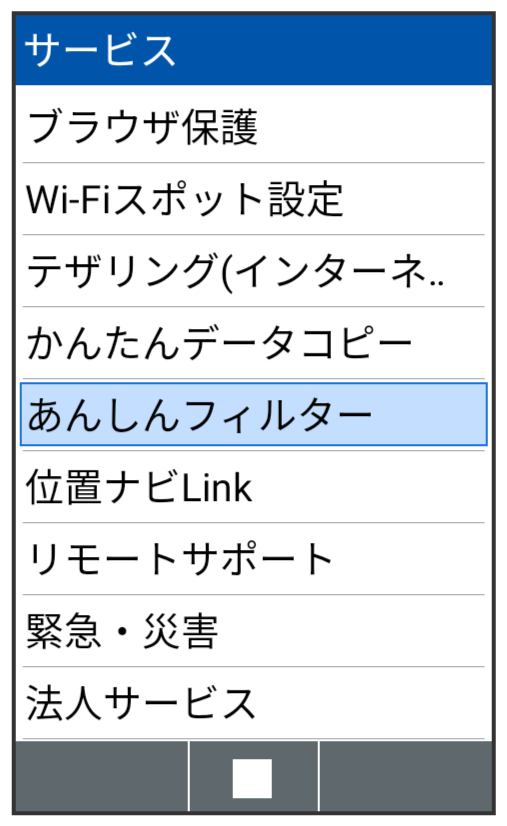 あんしんフィルター画面が表示されます。