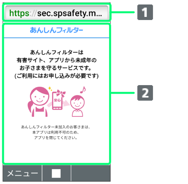 ブラウザ画面で- スタートページとはあんしんフィルター起動直後に表示されるページのことです。