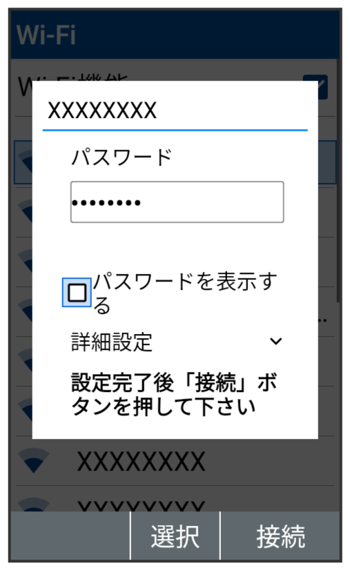 - アクセスポイントによっては、パスワードの入力が不要なこともあります。