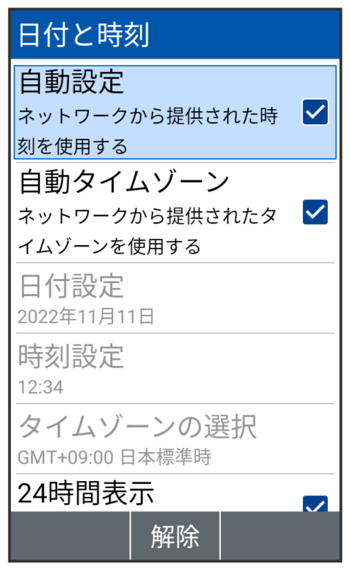 | 自動タイムゾーン | ネットワークから提供されたタイムゾーンを利用するかどうかを設定します。 |