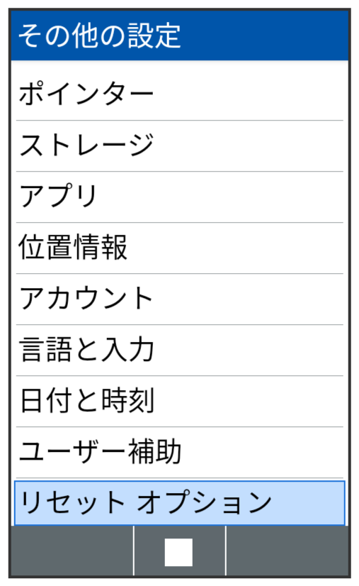 リセット オプション画面で操作用暗証番号を入力アプリの設定をリセットする