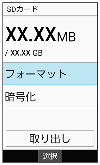 - フォーマットすると、SDカード内のデータがすべて消去されます。SDカードをフォーマットするときは、ご注意ください。