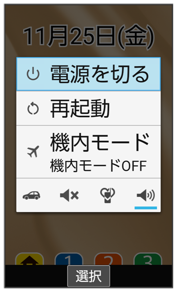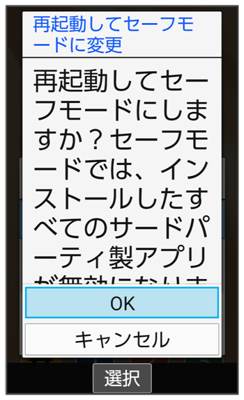 - セーフモード中は、機内モードに設定されます。セーフモードを解除しても、機内モードの設定が維持されますのでご注意ください。