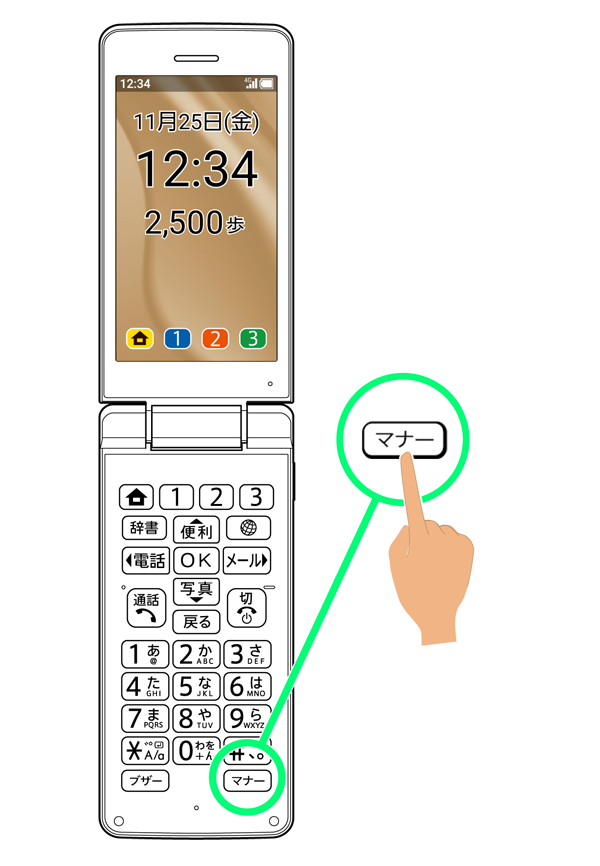 (サイドボタン)を長押しで設定できます。 - お買い上げ時は通常マナーが設定されます。