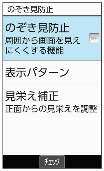 のぞき見防止設定画面でパターンを選択のぞき見防止使用時の正面からの見栄えを設定する
