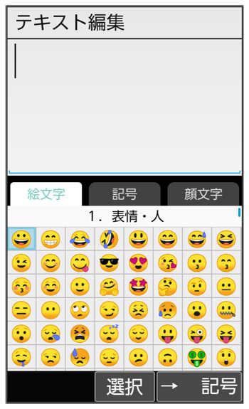 顔文字入力画面で、編集したい顔文字を選択こちらで検索できます