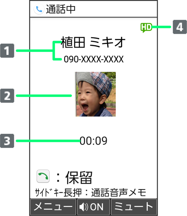 通話中に- Bluetooth®対応のハンズフリー機器やヘッドセット機器とペア設定しているときに利用できます。