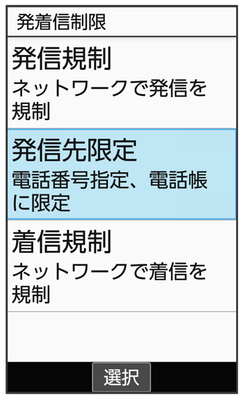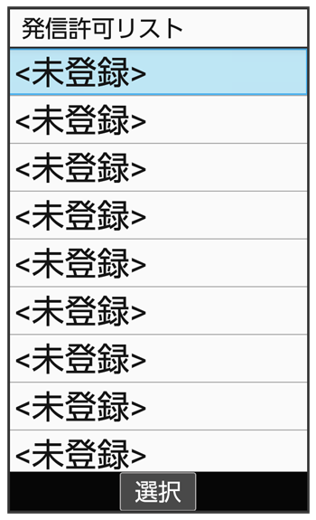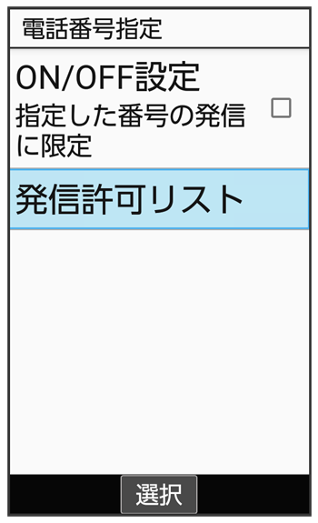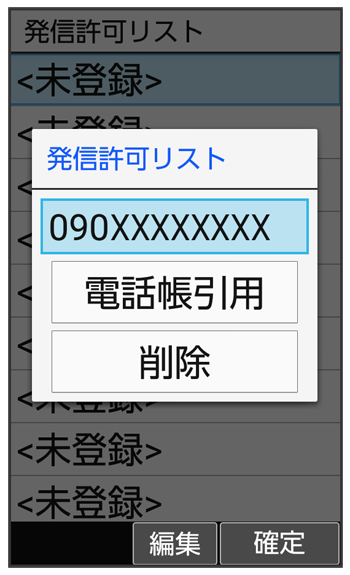 発信許可リスト画面で電話番号を選択- と操作して電話帳から電話番号を入力することもできます。