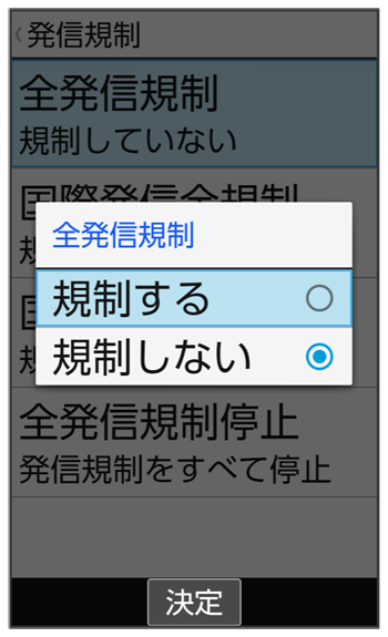 | 国際発信規制 | 滞在国と日本以外への国際電話の発信を規制します。 |