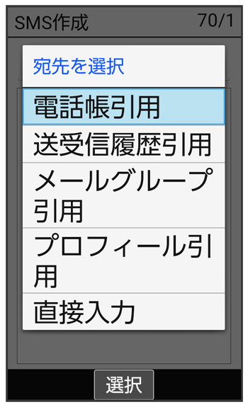 - /と操作すると、電話帳/送受信履歴から宛先を選択できます。