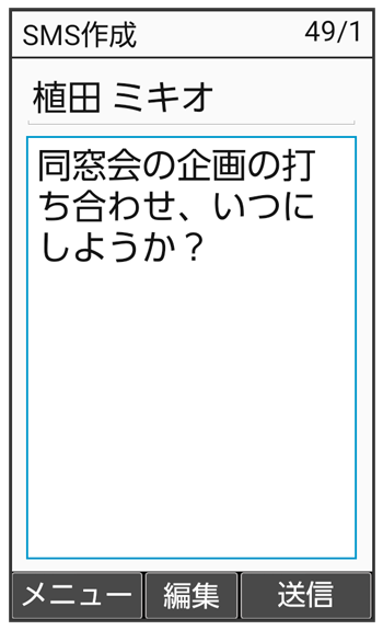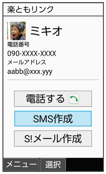 よく連絡する相手を楽ともボタンに登録すると、簡単にSMSを送信できます。