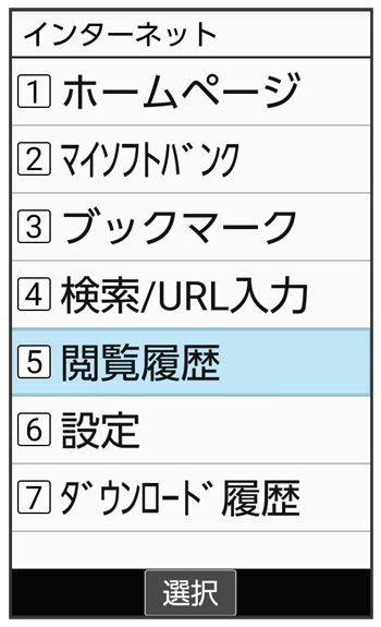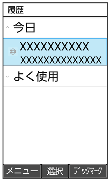 履歴画面で履歴を選択- 履歴がブックマークに登録済みのときはと操作すると、ブックマークから削除できます。