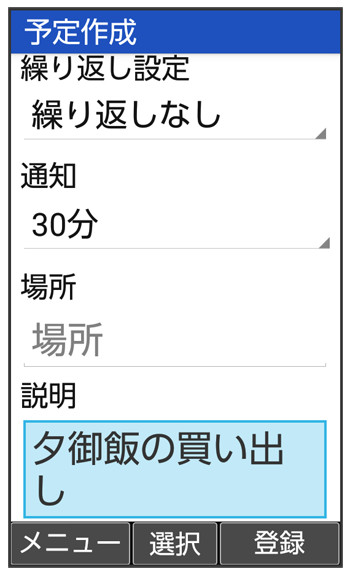 予定作成画面で繰り返し設定欄を選択場所の登録をする