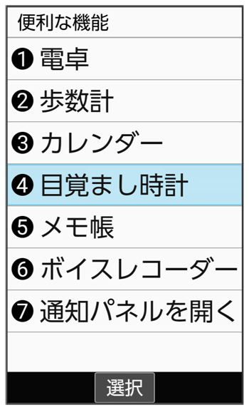 目覚まし時計設定画面が表示されます。