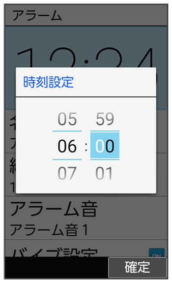 目覚まし時計設定画面で