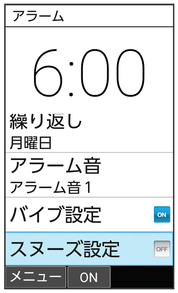 - スヌーズ(設定した間隔でくり返し目覚まし時計が鳴る機能)も設定できます。