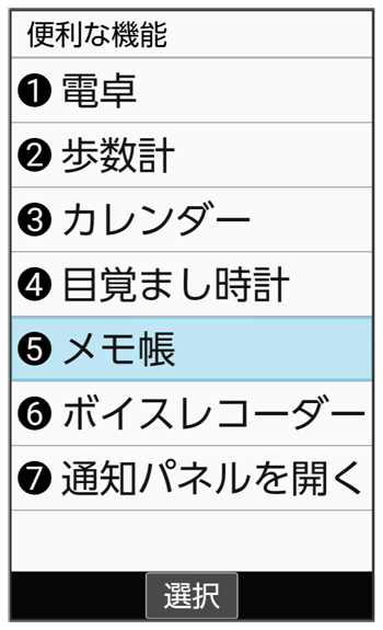 メモ帳一覧画面でメモを選択/メモ帳表示画面を表示メモを選択して削除する