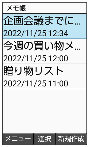 メモ帳一覧画面でメモを選択/メモ帳表示画面を表示メモを選択して送信する