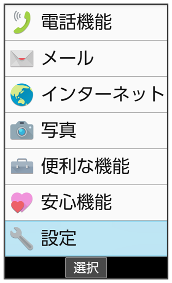 | セキュリティ | 画面のロックや暗証番号など、セキュリティに関する機能を設定できます。 |