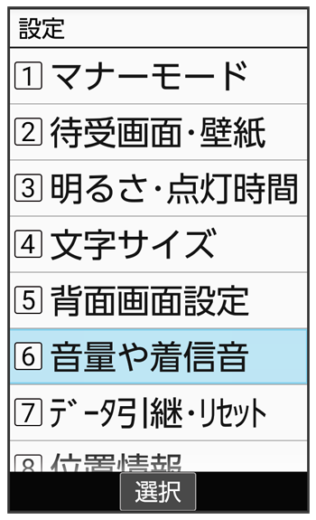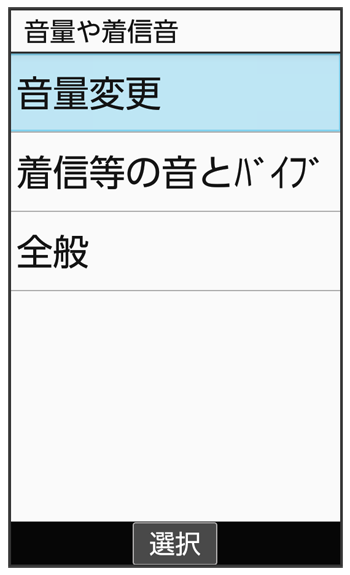| 音量変更 | 着信音や操作音などの音量を設定します。 |