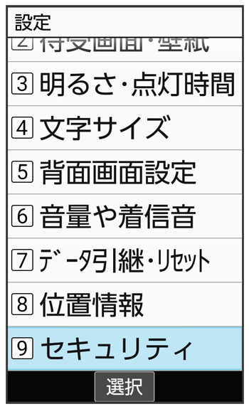 画面のロックや暗証番号など、セキュリティに関する機能を設定できます。設定できる項目は次のとおりです。