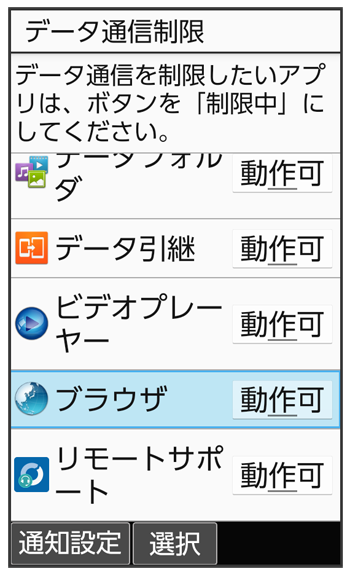 選択した機能のデータ通信が制限されます。
