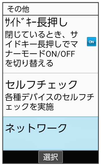 機内モードなどネットワークに関する機能を設定できます。設定できる項目は次のとおりです。