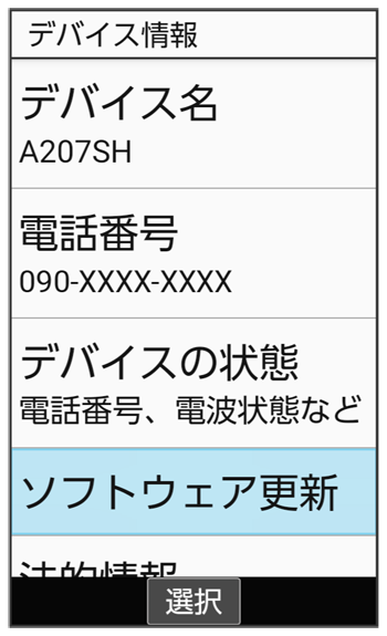 ソフトウェア更新画面が表示されます。