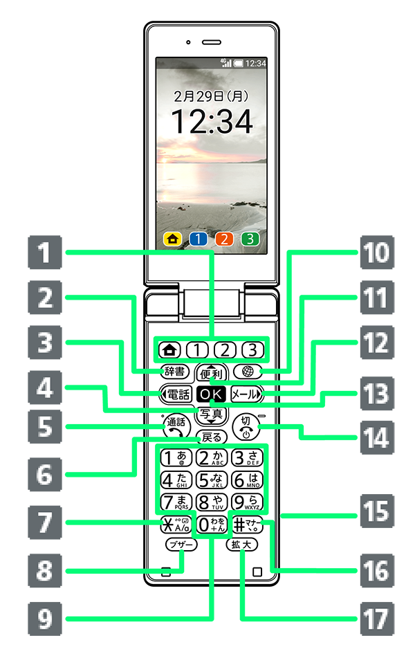 | 電話番号入力、各ボタンに対応した機能を起動(長押し)3 | |