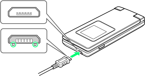 PC接続用microUSBケーブル[SHDDL1](オプション品)を使用して充電します。