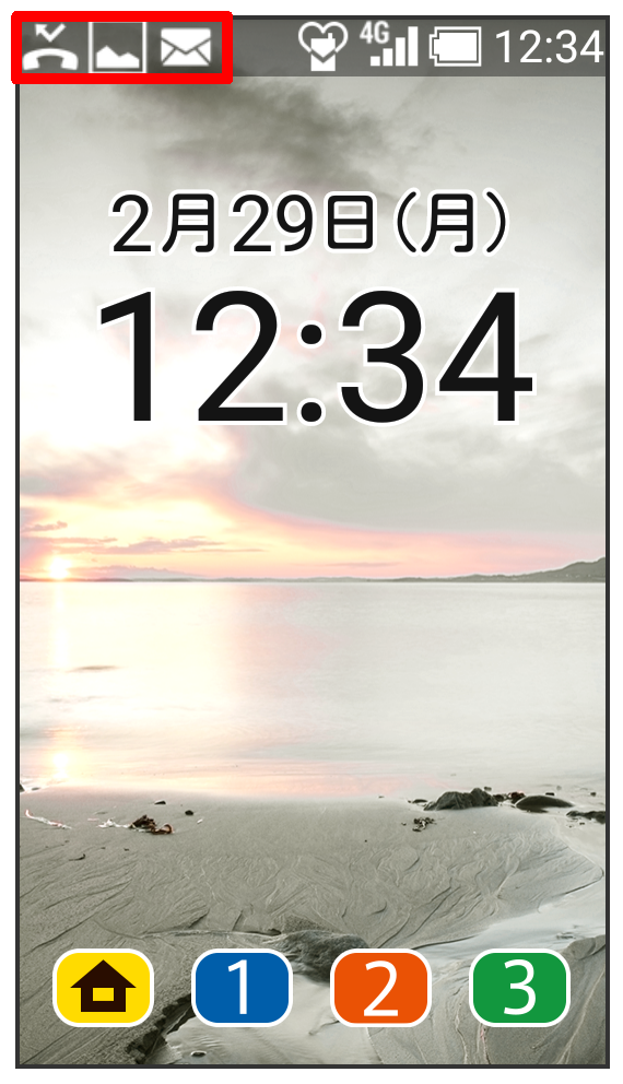 ステータスバーの左から表示されるマークには、次のようなものがあります。