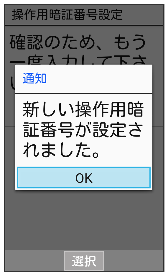 操作用暗証番号が設定されます。